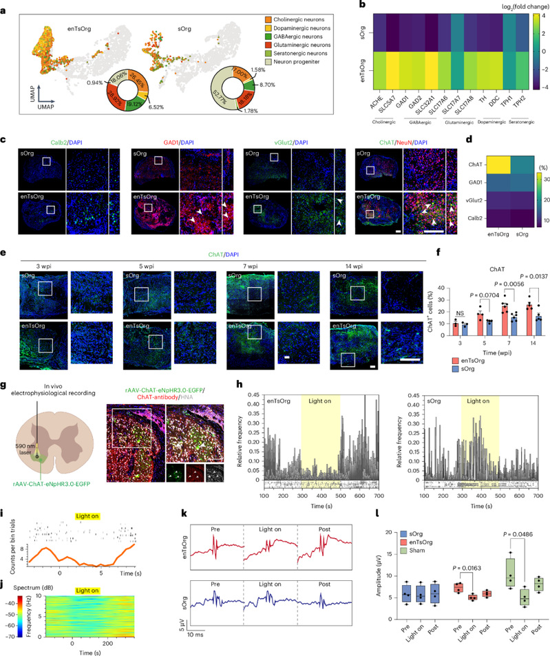 图4. 移植的enTsOrg促进了恢复运动功能的关键神经元的产生和功能化
