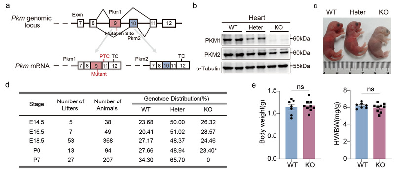 心脏是哺乳动物胚胎期最早发挥功能的器官,其发育过程中既要维持强大的能量供给以保证搏动,又要通过心肌细胞的增殖不断扩大体积和完善结构,从而为出生后的循环系统功能奠定基础。糖酵解关键酶丙酮酸激酶M型(PKM)存在两种剪接亚型,PKM1和PKM2,在能量供应和代谢平衡中发挥不同作用。PKM1以高活性的形式广泛存在于高能耗组织中,然而此前由于PKM1敲除常常伴随PKM2代偿性上调,其在心脏发育中的独立作用一直存在争议。阐明PKM1在胚胎心肌细胞增殖及心脏发育中的真实功能,对于理解心脏能量代谢与结构发育之间的联系具有重要意义。