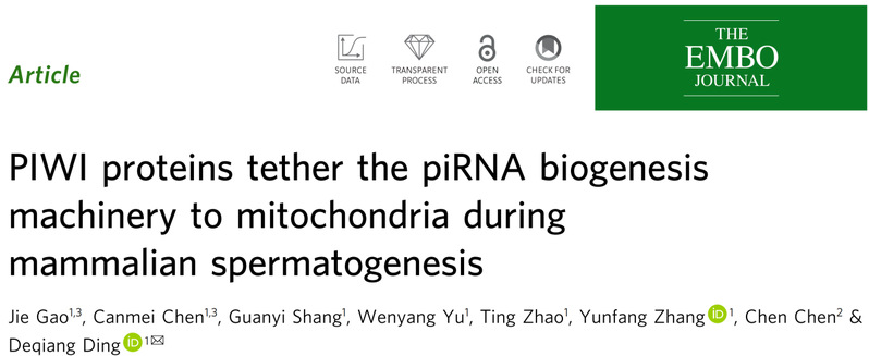 2025年9月29日,同济大学生命科学与技术学院/附属妇产科医院丁德强教授团队在The EMBO Journal上在线发表题为“PIWI proteins tether the piRNA biogenesis machinery to mitochondria during mammalian spermatogenesis”的文章。该工作揭示了PIWI蛋白在piRNA加工复合物在线粒体膜上的动态组装过程中发挥的关键作用。