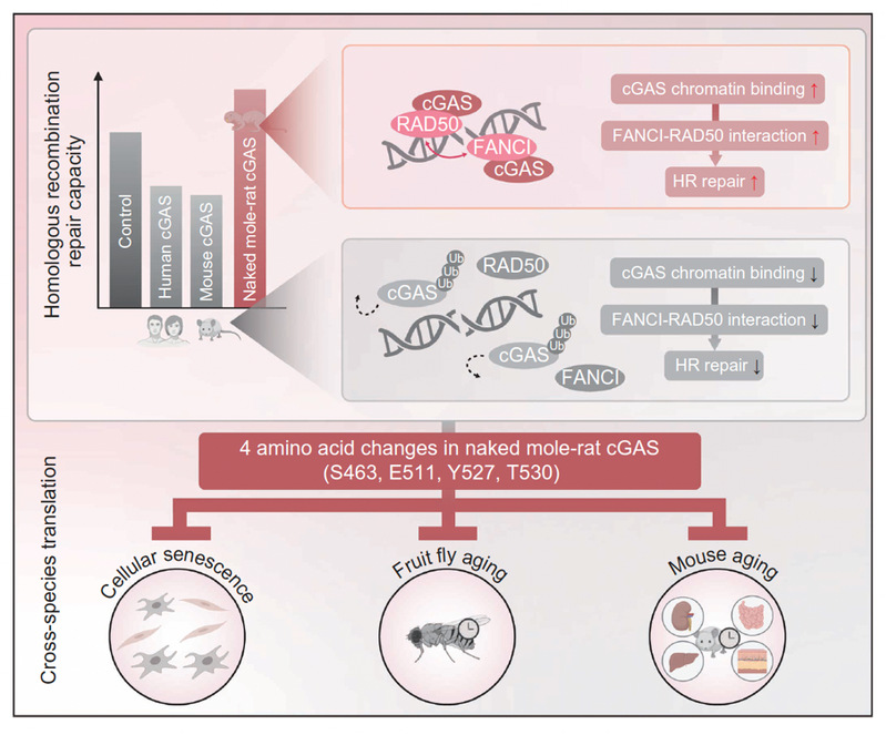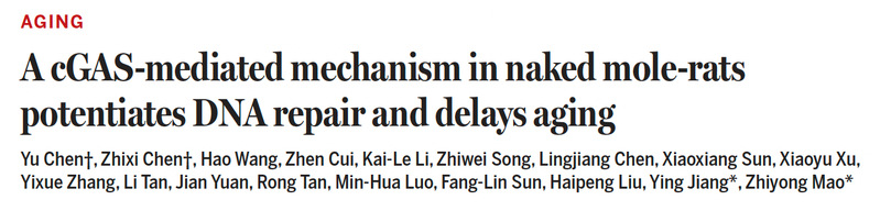 Science|毛志勇/蒋颖团队揭示裸鼹鼠cGAS通过增强DNA修复抵抗衰老的独特机制