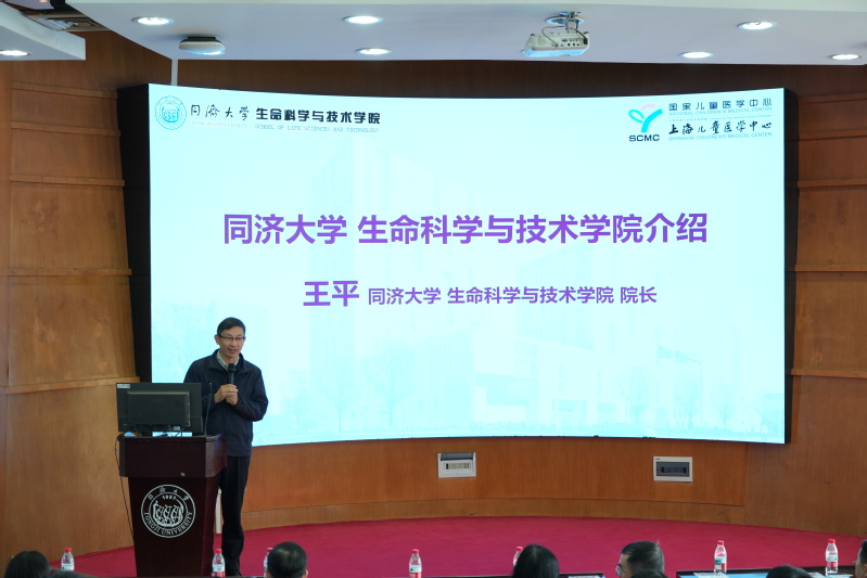 接着,同济大学生命科学与技术学院院长王平教授回顾了学院的历史与成绩,特别强调了近年来生物学学科成功入选国家“双一流”建设学科,以及生物信息学专业在全国名列前茅的里程碑意义。王院长简要介绍了学院近年来在Cell、Science、New England Journal of Medicine等顶级期刊上发表的多项原创性研究成果,展现了强大的基础研究实力。他呼吁双方应将这种基础研究优势与上海儿童医学中心丰富的临床资源紧密结合,构建“从实验室到病床”的高效转化创新体系。