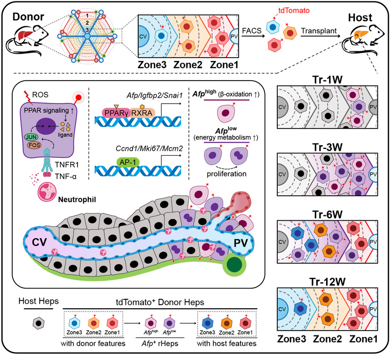 移植肝细胞经 “代谢-免疫” 双轴调控重编程为 Afp⁺ rHeps 并驱动肝脏分区重建