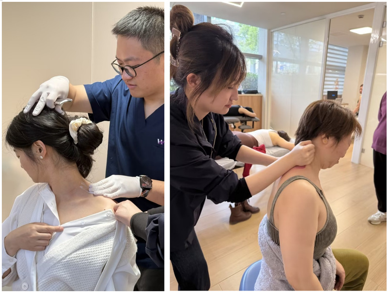 在康复体验环节,女教职工们近距离感受了多项前沿康复技术。COMPEX神经肌肉电刺激疗法通过温和电流唤醒深层肌群,带来由内而外的放松;康复师运用筋膜松解技术与手法理疗,针对个体劳损部位进行精准调理;筋膜球精准放松肩颈部位小肌群,配合拉伸达到全面松解肌肉的功效。