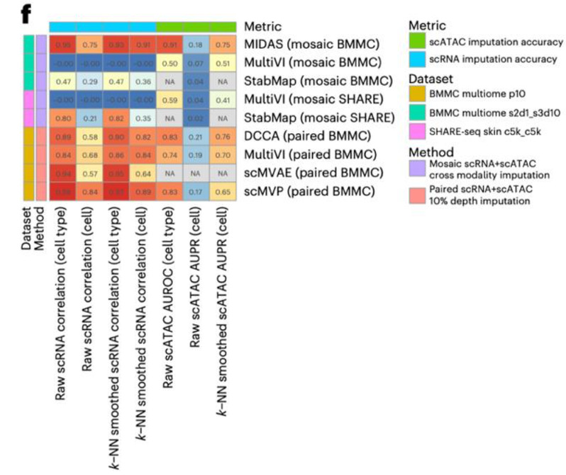 Fig. 3 Performance of mosaic integration and paired integration algorithms for cross-modal generation